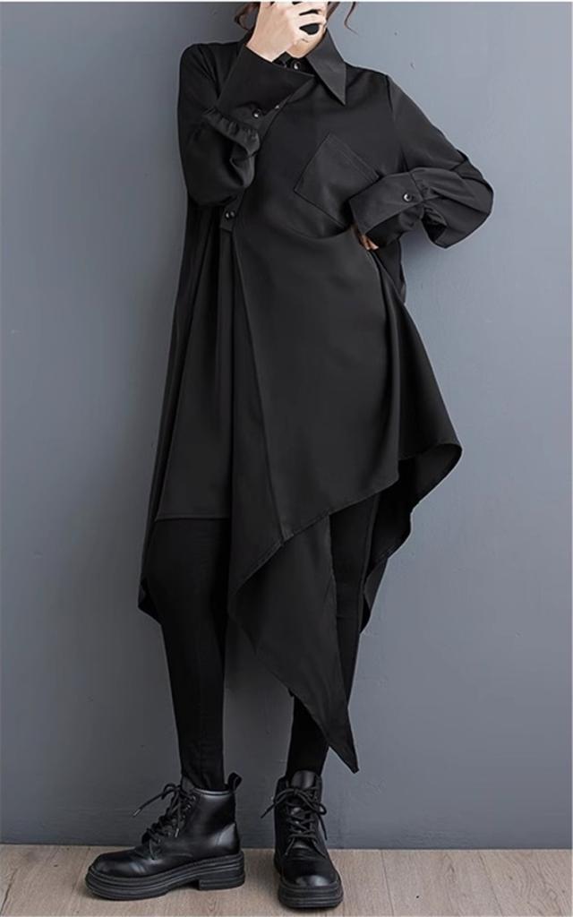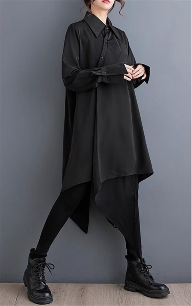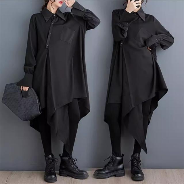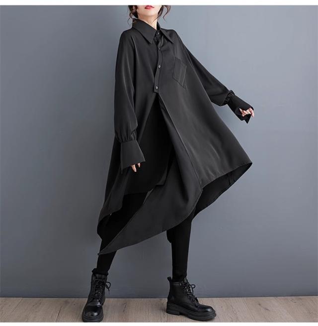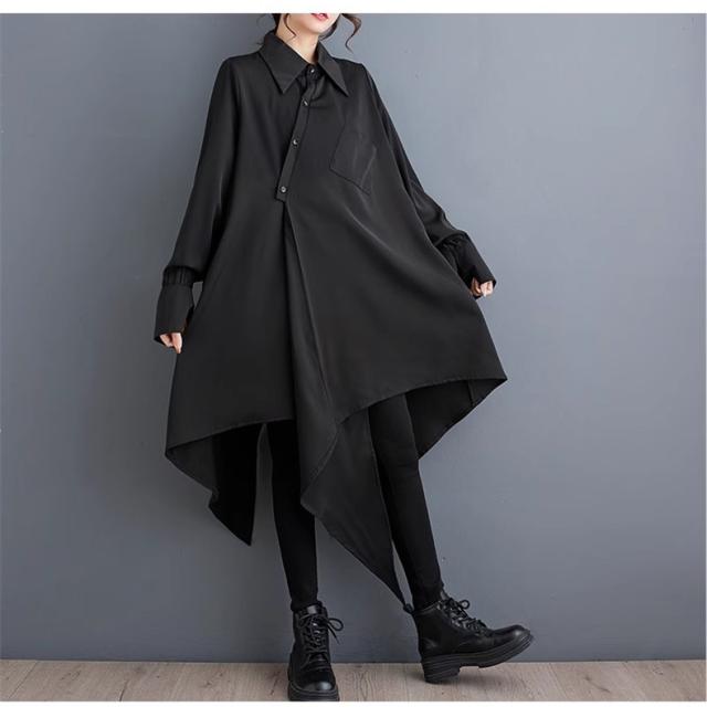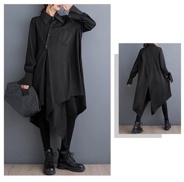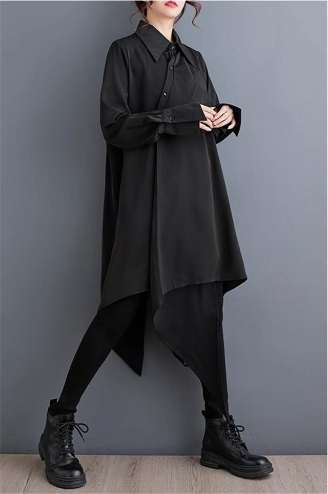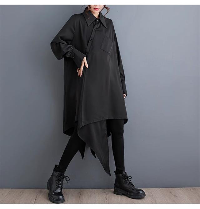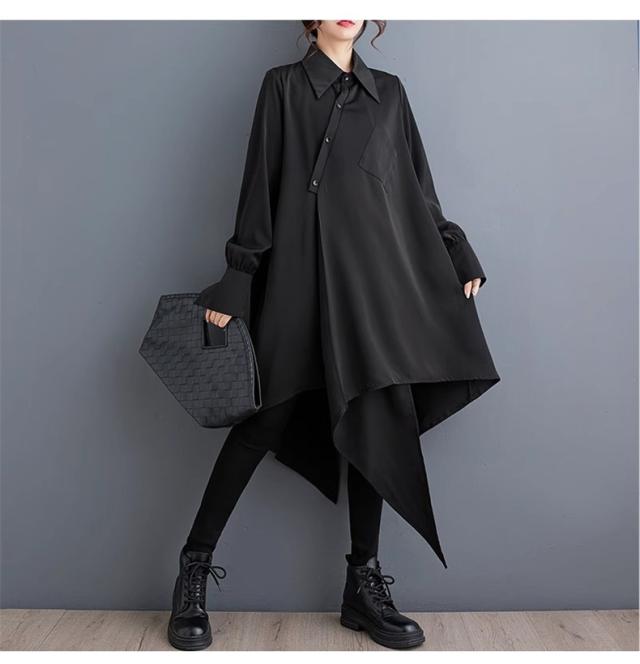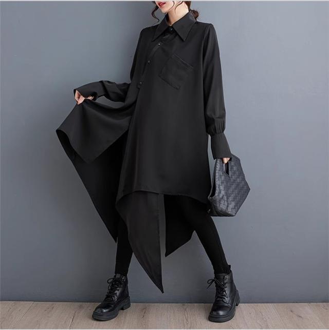 春ワンピース レディース シャツワンピース 長袖 体型カバー ゆったり 不規則 体のラインを拾いにくい スッキリとした 人気シルエット 春〜秋に大活躍