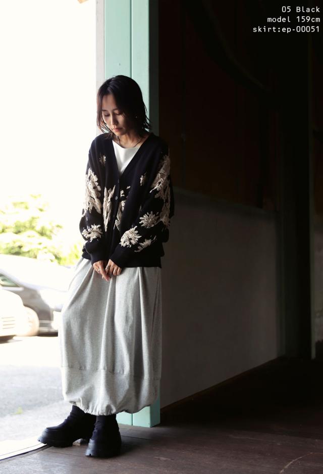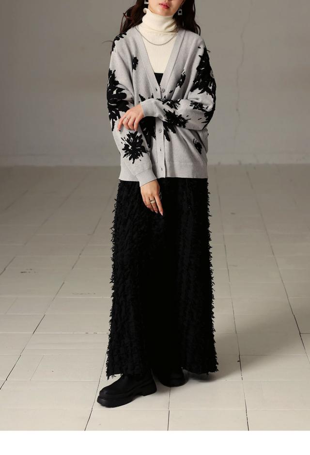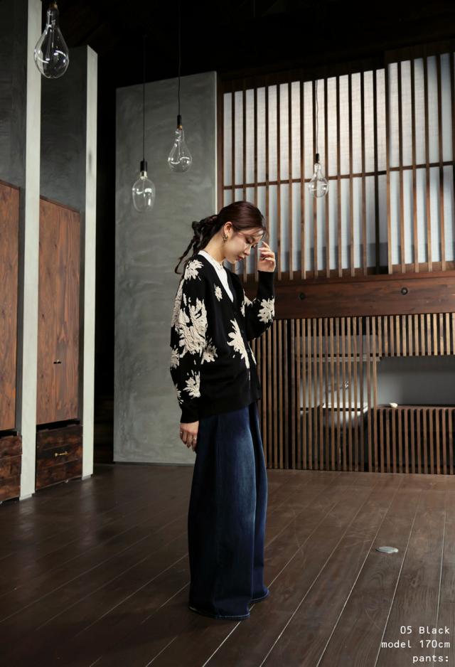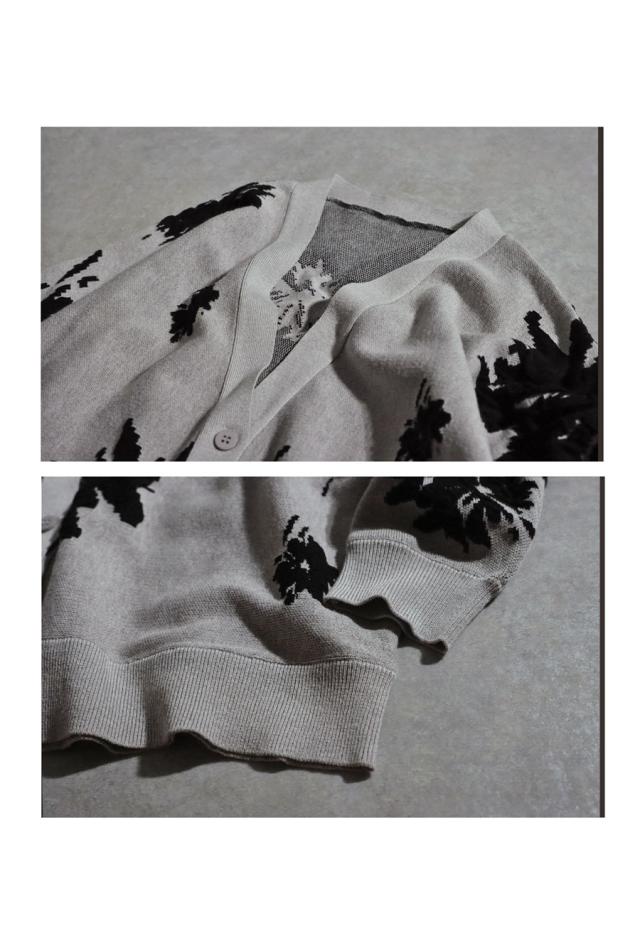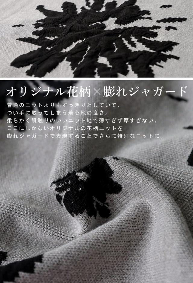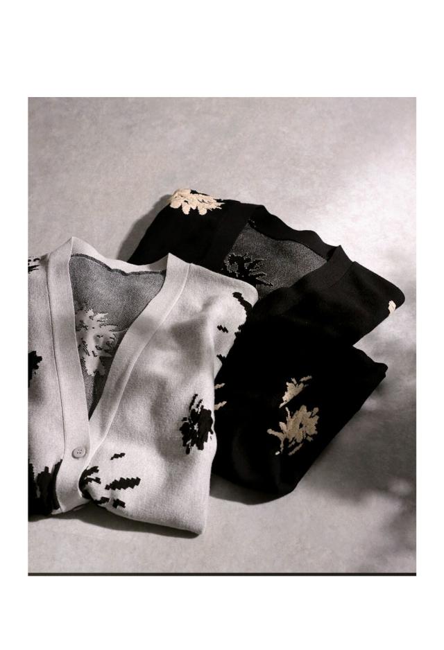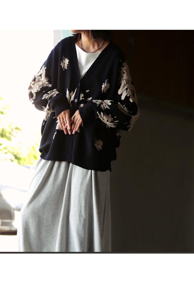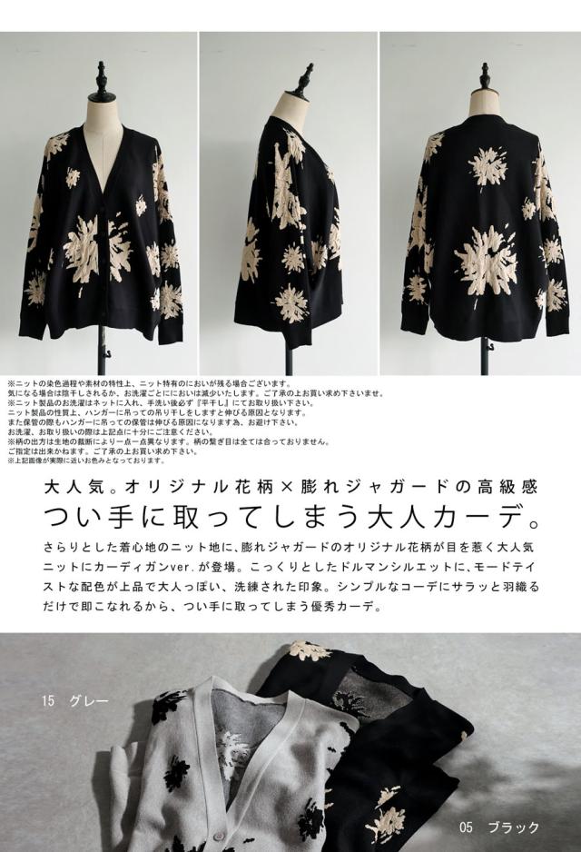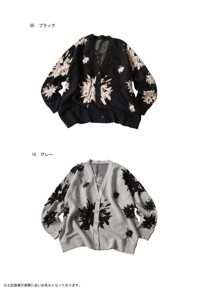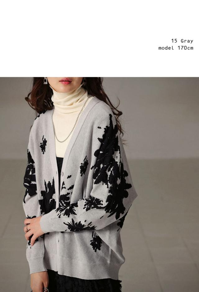 さらりとした着心地のニット生地に花柄が目を惹く、上品な印象のニットカーディガン。