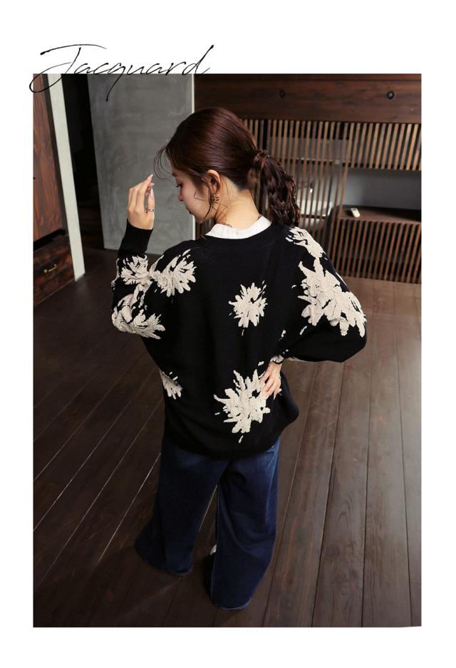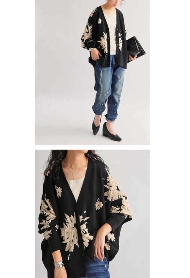 【検索ワード】花柄カーディガン カーディガン レディース トップス 長袖 ジャガード ドルマン ドルマンスリーブ Vネック ゆったり カーデ ニット 羽織り 柄 柄トップス 前開き 前ボタン マットボタン シンプル モード ドルマンカーデ 体型カバー 大きめ 大きいサイズ antiqua アンティカ 大人 おしゃれ 10代 20代 30代 40代 50代 60代 秋 冬 お洒落 カジュアル かわいい かっこいい あんてぃか