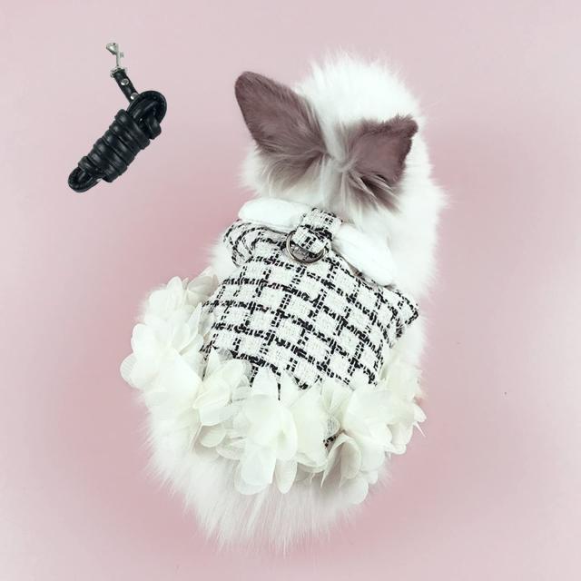 【美しく優雅のデザイン】かわいもおしゃれお洋服のように着せられるお洒落なデザインです。レースの花で飾られたウサギのハーネスは、人々に若々しい活力の感覚を与えます。ペットたちは春の花のように着飾っている。