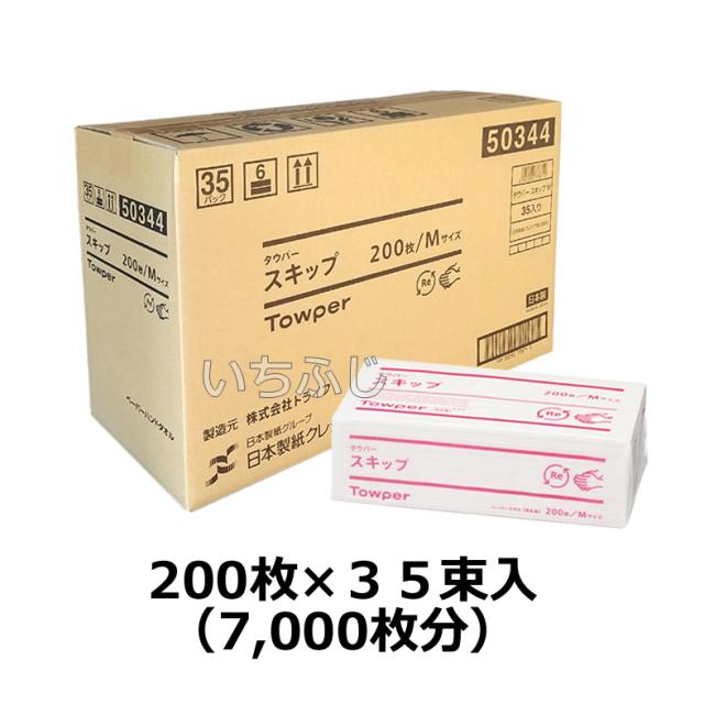 タウパースキップM 200枚 1ケース35束入 ペーパータオル レギュラーサイズ 再生紙