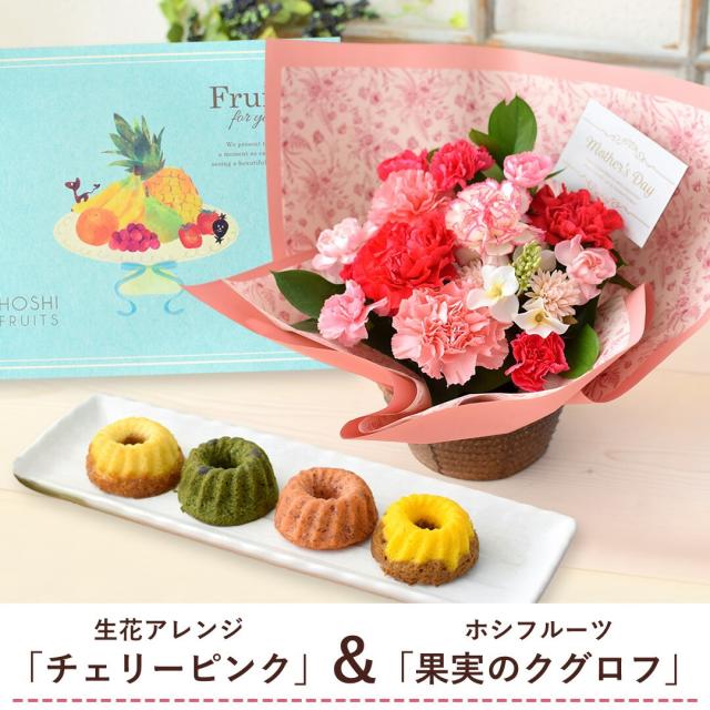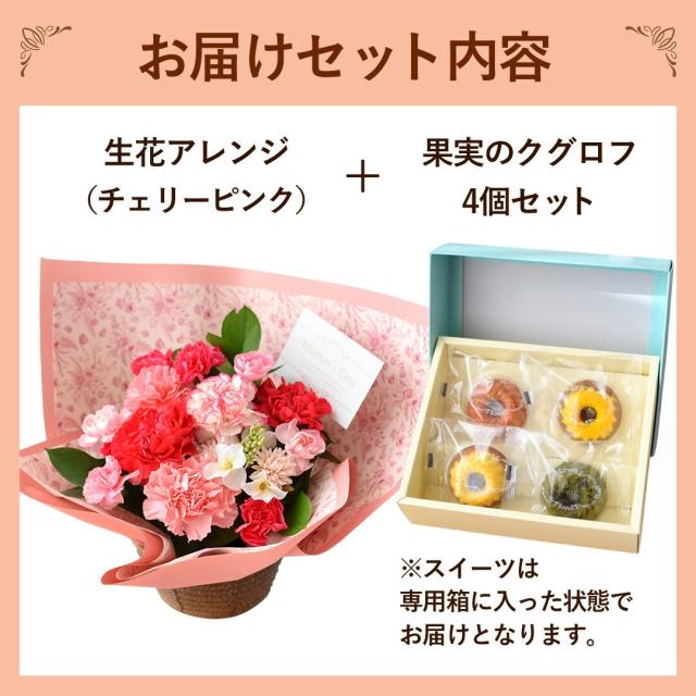 ●A.生花アレンジ チェリーピンクver&果実のクグロフセット