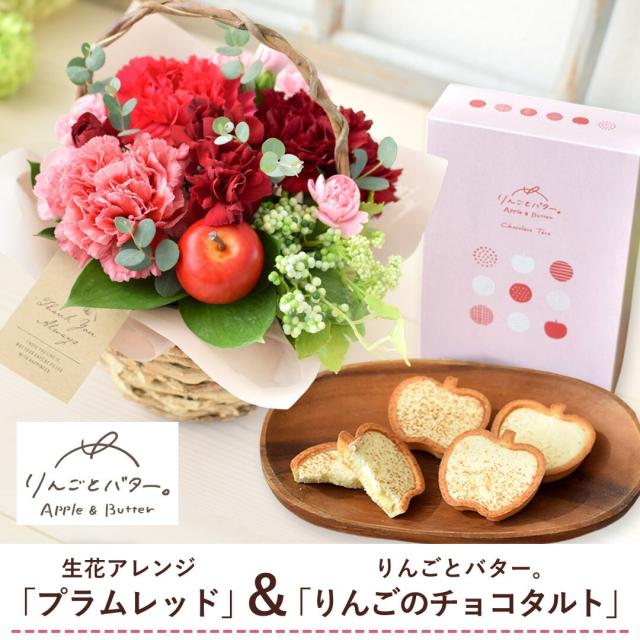 ●B.生花アレンジ プラムレッドver&りんごのチョコタルトセット