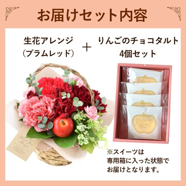 ●生花アレンジ プラムレッド&りんごのチョコタルト