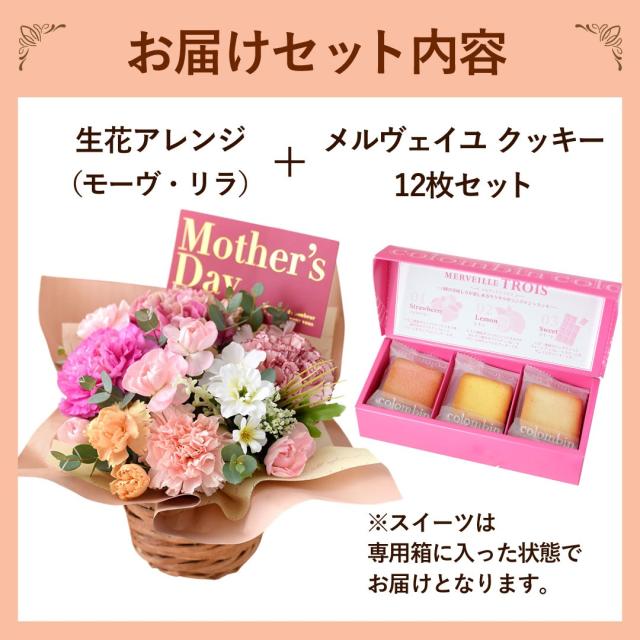 母の日 ギフト プレゼント フラワーギフト お祝い 母の月 生花 生花アレンジ アレンジメント スイーツセット