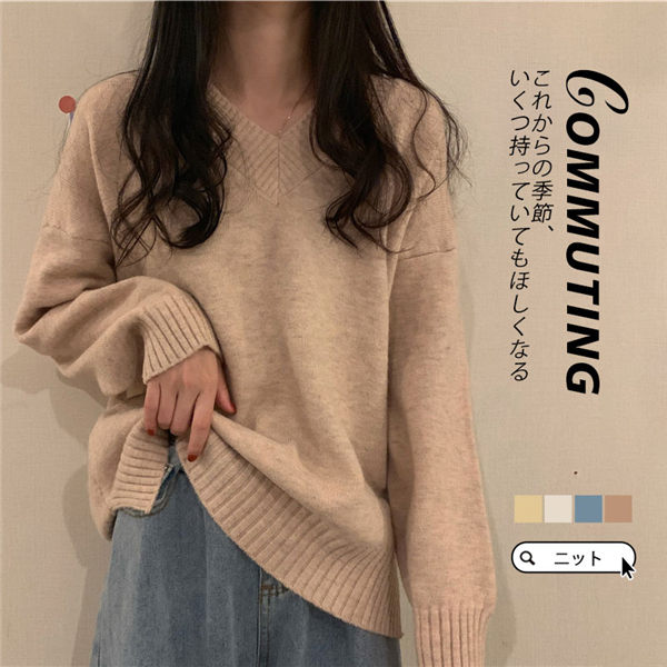 【~4/20まで P2倍+限定クーポン】 ニット レディース セーター 春服 長袖 春 トップス Vネック ニットセーター プルオーバー 春 秋 冬 カジュアル 春コーデ ゆったり レイヤード 値引き中