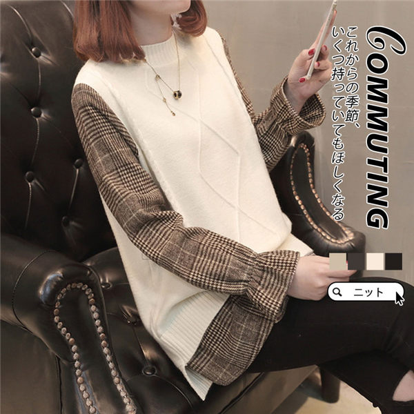 【~4/20まで P2倍+限定クーポン】 ニット レディース セーター 春服 長袖 春 トップス Vネック ニットセーター プルオーバー 春 秋 冬 カジュアル 秋コーデ クルーネック フェイクレイヤード 値引き中