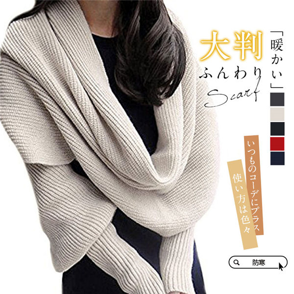 【~4/30まで P5倍+限定クーポン】 ストール マフラー レディース 無地 袖付き 厚手 ニット ローゲージ 巻き物 秋 冬 防寒 ネックウォーマー ロングマフラー 暖かい 厚手 シンプル