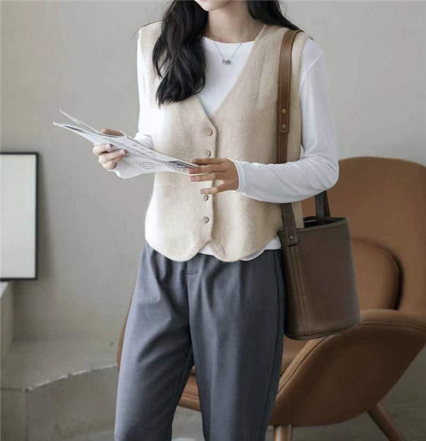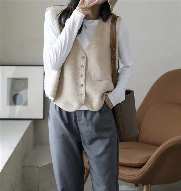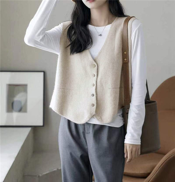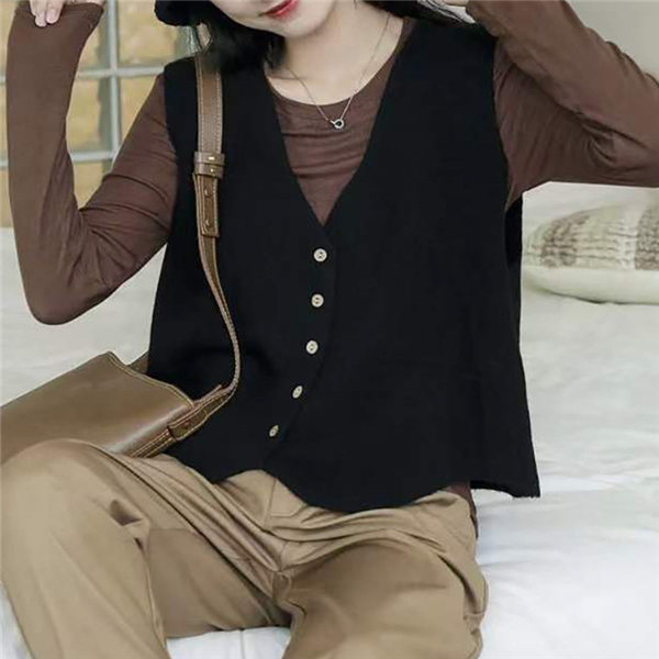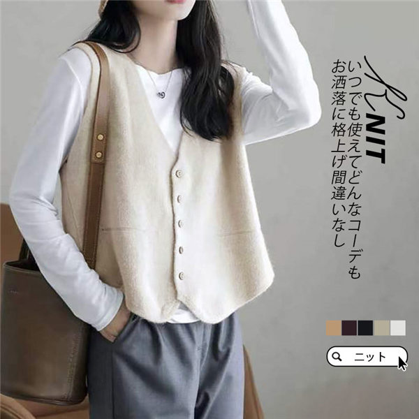 【水曜日まで!10%クーポン配布中】 ニットベスト レディース Vネック ノースリーブ レイヤード ゆったり ジレ リブ 開襟 秋コーデ 秋服 フォマール 秋冬 チョッキ 重ね着 カジュアル 無地