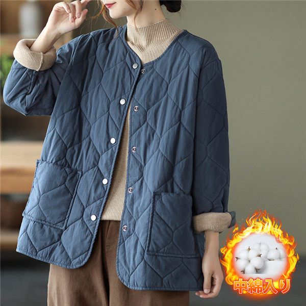 【~4/24まで P10倍+限定クーポン】 キルティングコート レディース 綿入りコート ノーカラー ジャケット 厚手 パーカー カジュアル アウター 秋服 秋コーデ ビジネ