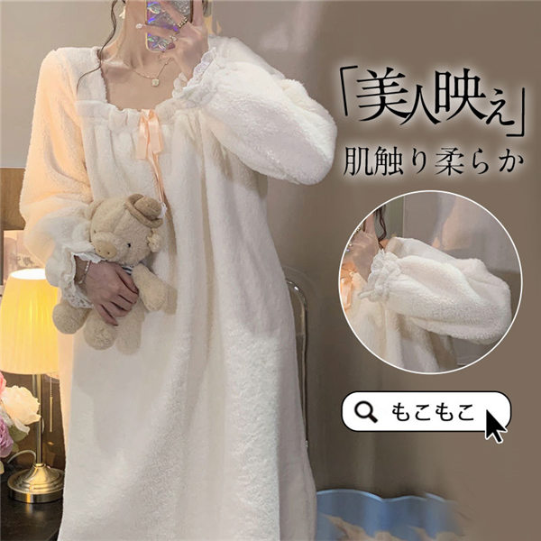 【水曜日まで!10%クーポン配布中】 ルームウェア レディース パジャマ ワンピース マタニティ ネグリジェ 秋冬 寝巻き 長袖 厚手 もこもこ ゆったり 無地 防寒 寒さ対策 保温 部屋着
