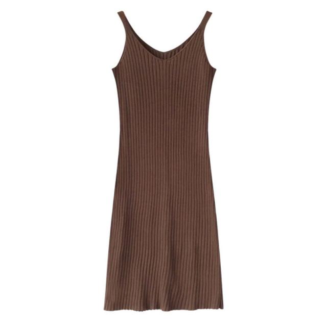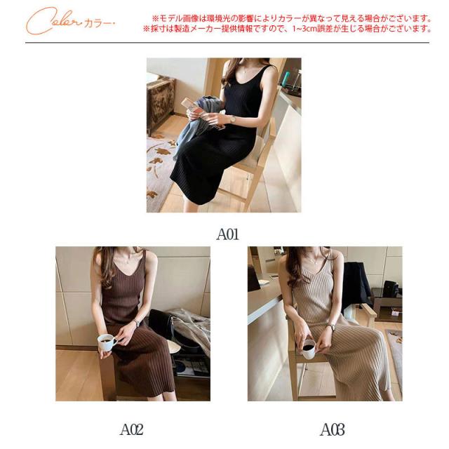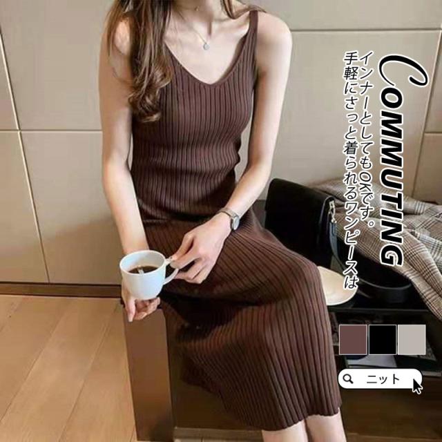 【水曜日まで!10%クーポン配布中】 ニットワンピース レディース ひざ丈 ノースリーブ ネグリジェ ニット チュニック インナー スリム 細身 プルオーバー ニットソー 秋服 Vネック 春秋 冬