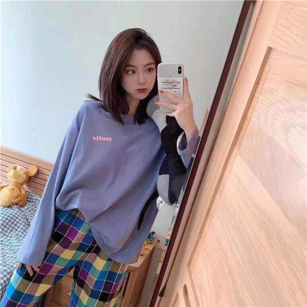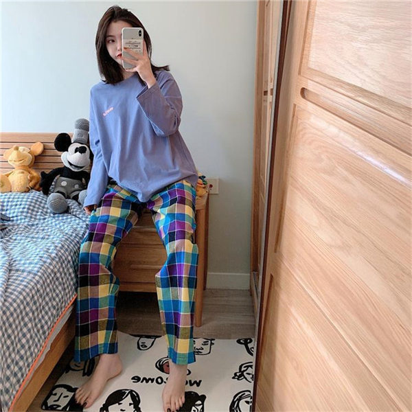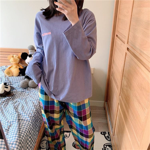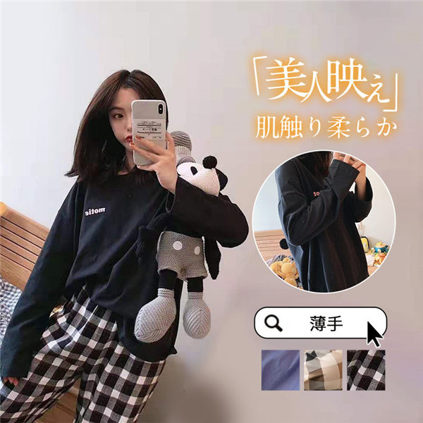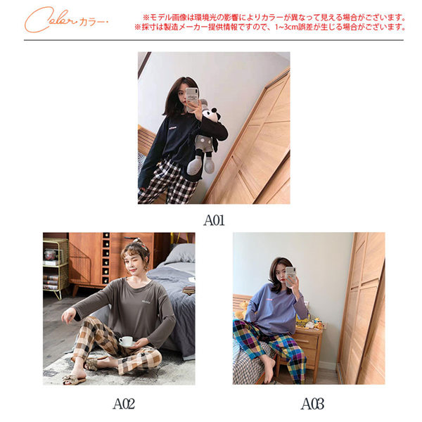【水曜日まで!10%クーポン配布中】 パジャマ ルームウェア レディース 長袖 ゆったり チェック柄 薄手 長ズボン 上下セット 寝間着 部屋着 秋冬 春 Tシャツ パンツ セットアップ