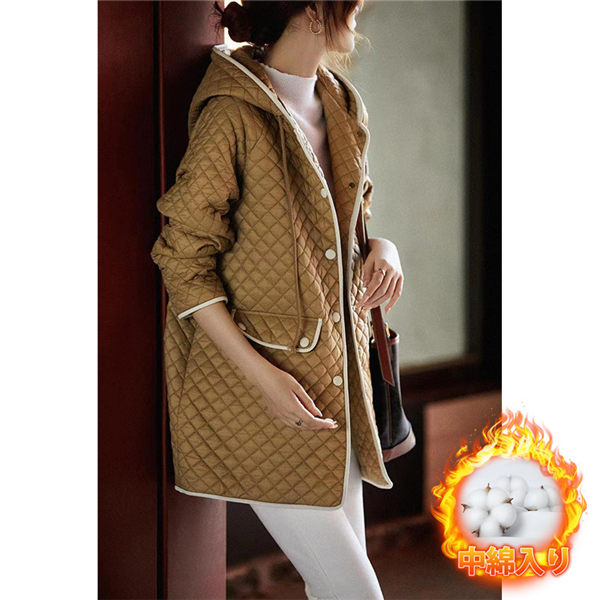 【水曜日まで!10%クーポン配布中】 コート アウター レディース ダウン ダウンコート 暖かい ボタンダウン フード付き ロングコート 秋冬 保温 防寒 キルティング