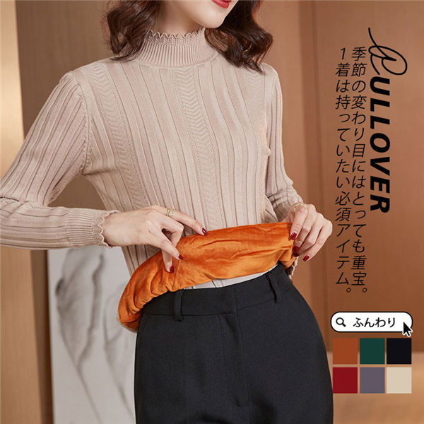 【水曜日まで!10%クーポン配布中】 ニットセーター レディース 長袖 秋冬 プチハイネック セーター レイヤード ニット スリム 裏ボア 裏起毛 厚手 プルオーバー インナー ニットソー 春