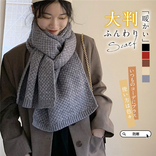 【~4/20まで P2倍+限定クーポン】 マフラー ストール レディース メンズ 無地 厚手 ニット ローゲージ 巻き物 秋 冬 防寒 ネックウォーマー ロングマフラー 暖かい 厚手 シンプル