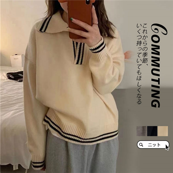 【水曜日まで!10%クーポン配布中】 ニット レディース セーター 春服 長袖 春 トップス プルオーバー 春 秋 冬 カジュアル 秋コーデ ゆったり ニットウエア Vネック