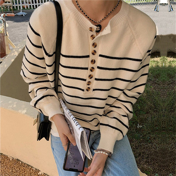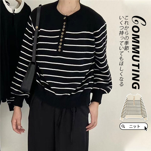 【~4/30まで P5倍+限定クーポン】 ニット レディース セーター 春服 長袖 春 トップス プルオーバー 春 秋 冬 カジュアル 秋コーデ ボタンダウン クルーネック ストラ
