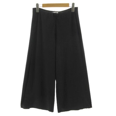 【中古】ザラ トラファルック ZARA Trafaluc パンツ ワイドパンツ ウエストゴム スリット ストレッチ ストライプ 黒 S