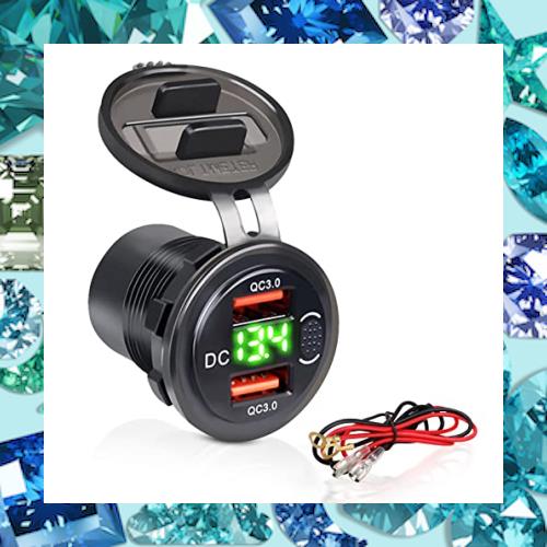 【 IP66防水・防塵設計】ゴムの透明USBカバーによって防水防塵を防いで、内部回路を保護して、その使用寿命を効果的に延長します。USBインターフェース上のタイトフィットキャップに電圧デジタルが表示できます、充電器を効果的に保護します。