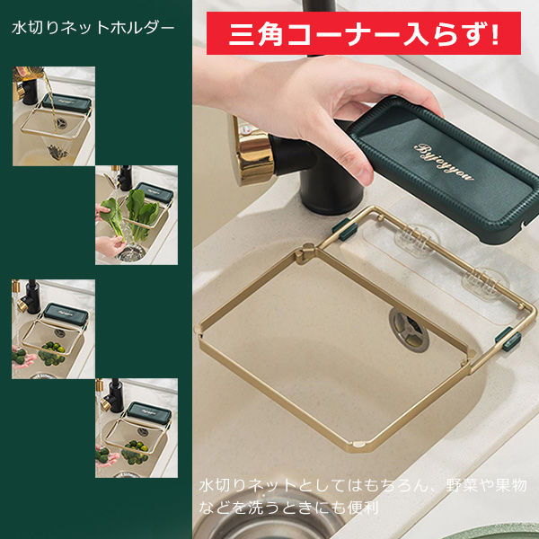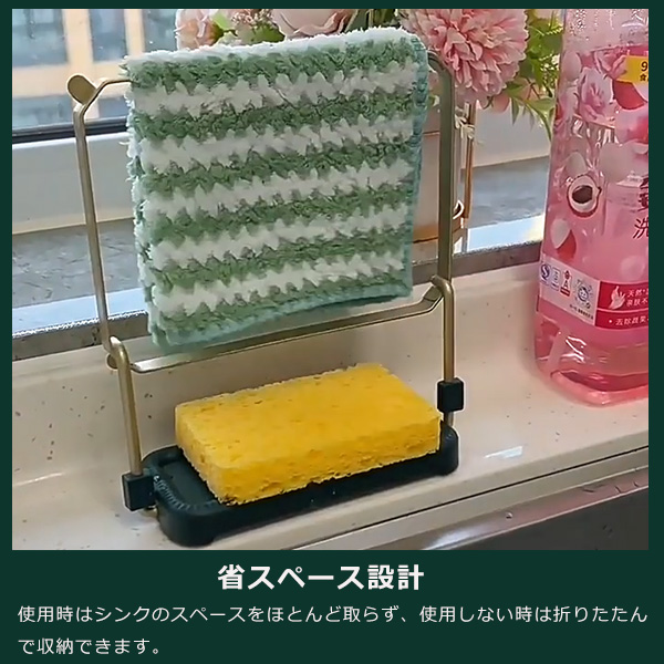 【シンクの角に設置する折りたたみ式省スペースホルダー】