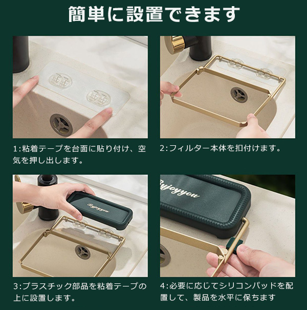 | 商品説明 | 【シンクの角に設置する折りたたみ式省スペースホルダー】 食べ残しや茶葉などの小さなゴミを簡単にキャッチし、シンクのつまりを防ぎます。 50枚の交換用ネット付きで、ゴミが溜まったら簡単に交換できます。 さらに、野菜や果物の水切りにも便利。使用しない時は折りたたんで収納でき、スペースを有効活用できます。 【実用的な機能】 ・食べ残しや茶葉などのゴミを分け、シンクのつまりを防ぎ、掃除の手間を省きます。 ・洗った野菜や果物を置いて水切りかごとしても使用できます。 【簡単に取り付ける】 ・カウンタートップを乾かす。 ・付属のステッカーでホルダーを固定する。 ・ネットを装着する。 【省スペース設計】 ・使用時はシンクのスペースをほとんど取らず、使用しない時は折りたたんで収納できます。 ・細菌の増殖を防ぎ、使用済みネットは簡単に捨てられます。 【その他の特徴】 ・細かなゴミもしっかりキャッチできる丈夫なネットは、野菜や果物の水切りにも便利です。 ・取り換え簡単:ゴミがたまったら、使用済みのネットをそのまま捨てるだけで、後処理も簡単です。 ・衛生的な使用:三角コーナーの代わりにシンクの横に設置し、ヌメリや臭いを防ぎます。 ・使いやすさ:四隅の突起に引っ掛けてネットを固定でき、使用後は手を汚さずに簡単に取り外して捨てられます。 ・付属のネットは目が細かく、弾力があり破れにくいです。 ・スタイリッシュなデザインのベースはキッチンのインテリアのアクセントになり、野菜やフルーツの水切り、ふきん掛けなど多様な用途に使用できます。 【商品仕様】 ■サイズ(約):W16.2 x D21 x H2.0 cm ■重量(約):22g ■材質:鉄、PP ゴミラック 取り換えネット50枚付き 手袋型は、毎日のゴミ処理を快適にする便利なアイテムです。ぜひお試しください! 【注意事項】 ※本商品には説明書が付属しておりません。使用方法に関しては商品ページをご参照ください。 ※商品画像はご覧になっているモニターやPCなどの環境、解像度により、実物と多少カラーが異なる場合がございます。 色味やサイズが異なるなどのクレームはご対応致しかねますので、予めご了承ください。 ※輸送中に外装に傷やへこみが起こる場合がございますが、商品に影響はございませんので、予めご了承のもとお買い求めください。 ※本商品は海外からの輸入品ですので、細かい傷や汚れなどある場合がございます。予めご了承のもとお買い求めください。 ※こちらの商品は安価にご提供するため、簡易包装、簡易パッケージとなっております。 ※本商品を使用した事による、直接もしくは間接的に生じた損害、事故、怪我について当店は一切の責任を負いません。 ※シールを直接貼りますと、塗装が剥れる場合がございます。取扱時は予めご了承のもとご使用ください。 ※デコボコがある箇所には取り付けできませんので、予めご了承のもとお買い求めください。 |
