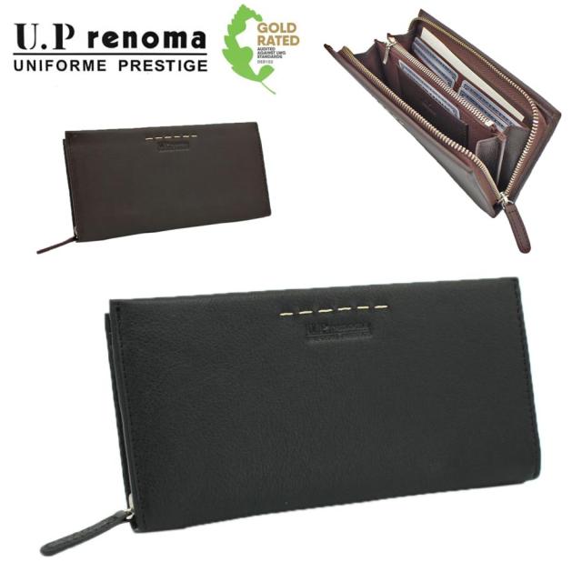 サイフ ラウンドファスナー 長財布 束入れ メンズ 本牛革 ステッチ ブランド U.P renoma 61R672 小銭入れ カード入れ スリム ソフト レザー 化粧箱入り ギフト プレゼント お祝い