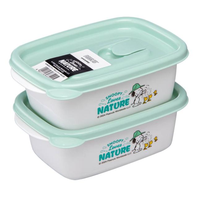 スヌーピーの保存容器です。おかずの作り置きやごはんの冷凍保存、離乳食の保存などに役立ちます。2個入りなのでたっぷり保存することができます。収納時は本体を重ねることができ、省スペースになります。持ち手付きで加熱後、持ち運ぶ際に便利なのも嬉しいポイントです。