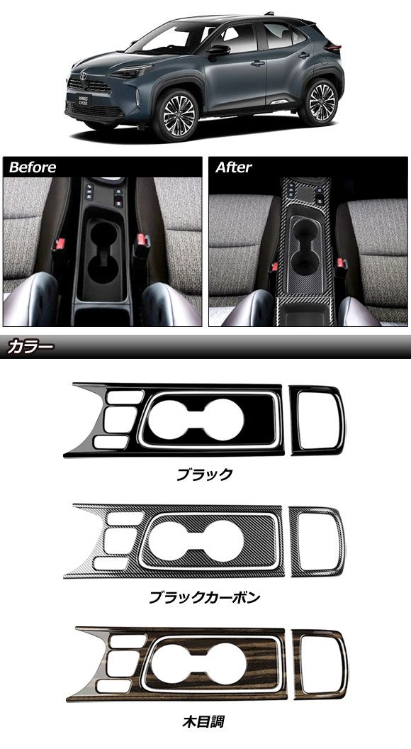 カップホルダーカバーセット トヨタ ヤリスクロス 10系 2020年08月〜 木目調 ABS製 入数:1セット(3個) AP-IT3659-AB-WD