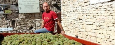 【「シャサーニュ・モンラッシェ・ブランの生産者の多くは、ぶどうを早めに収穫して酸を多く残し、補糖をした後バトナージュによってコクを出すという考え方でワインを造っていますが、私たちはぶどうを完熟させることにこだわっており、この辺りでは最も遅く収穫を開始するドメーヌのひとつです。ぶどうを完熟させた方が、酸と糖の自然なバランスを得ることができますし、ぶどう本来の果実味による豊かなコクを引き出すことができます。また、料理に合わせる際の鍵となる、たっぷりとしたミネラルも失われません。赤ワインについてもぶどうを完熟させることはもちろん、ピジャージュを行わずルモンタージュだけで醸すことで、ぶどう本来の美味しさや滋味を自然に引き出すようにしています。」