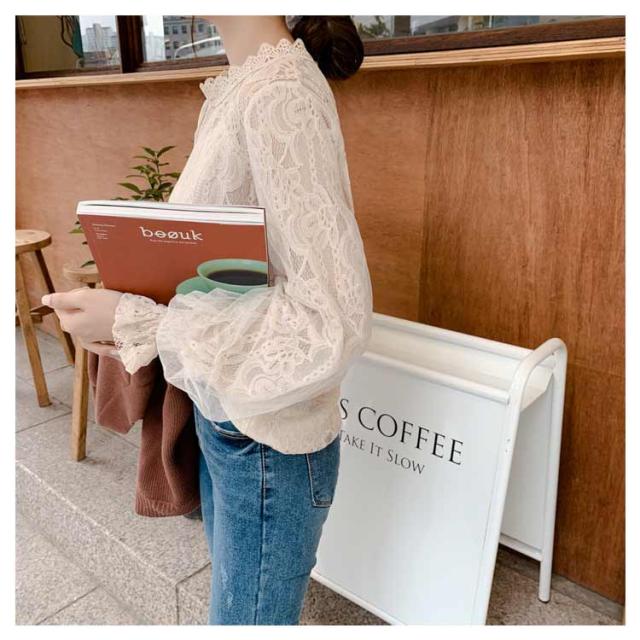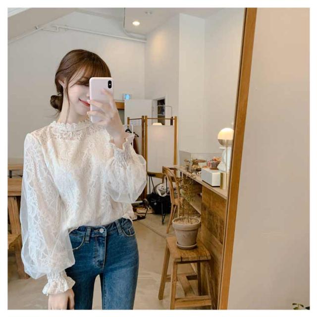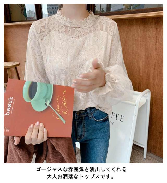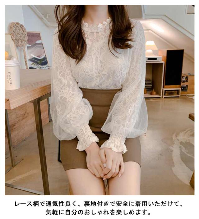 シャツ シャツ お洒落 可愛い 総レース ブラウス オフィス パフスリーブ レディース 長袖 フォーマル トップス 通勤 OL 通学 キレイめ カジュアル 春秋 シンプル