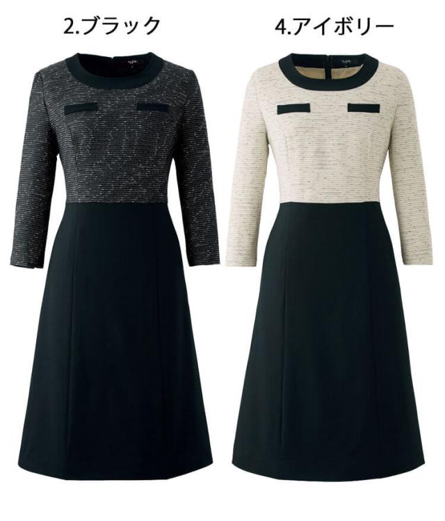 事務服 制服 接客 受付 en joie アンジョア ツイード ワンピース 66760 プラージュシリーズ
