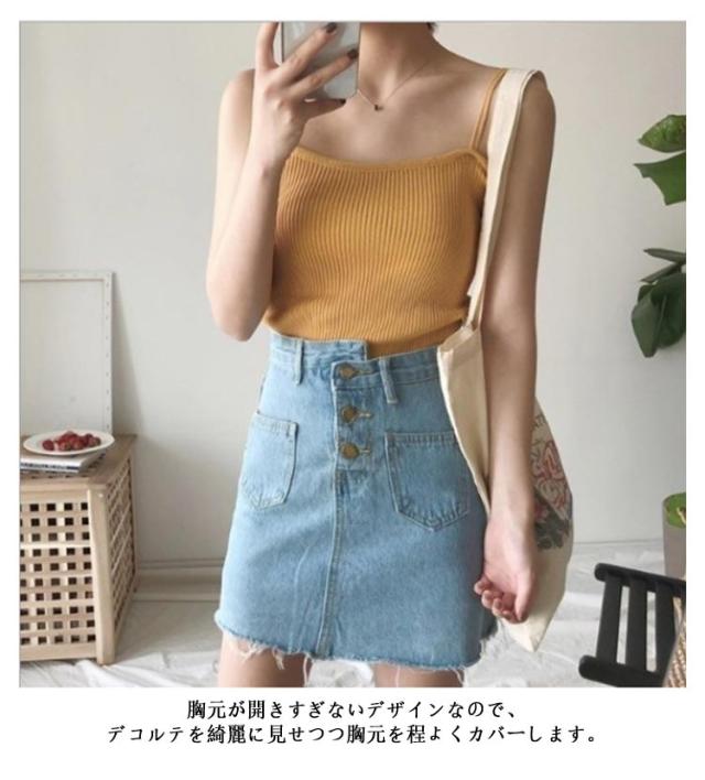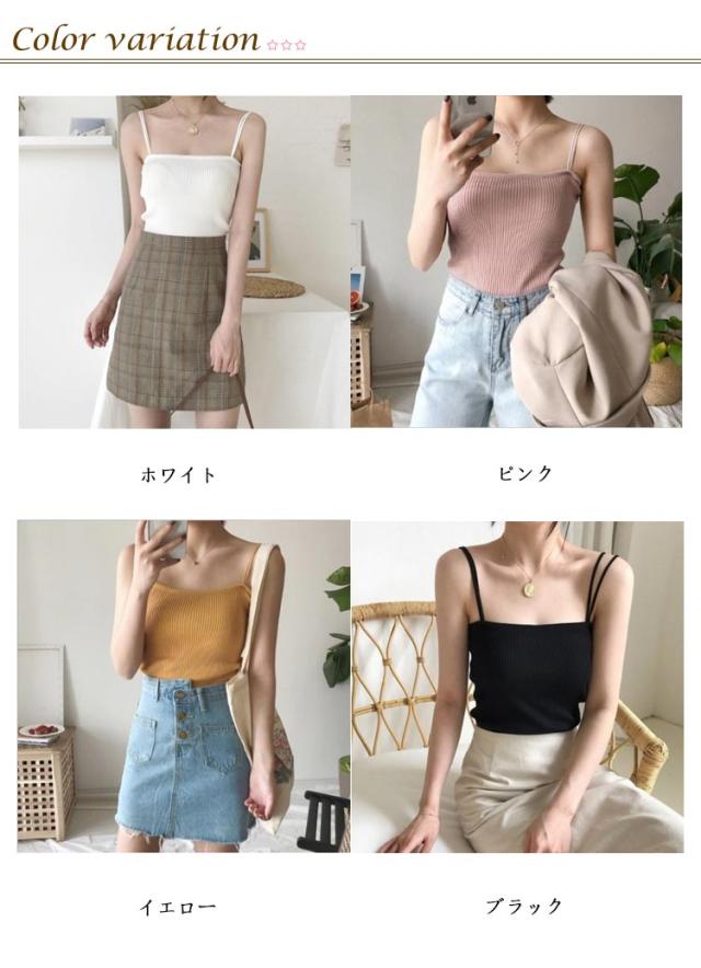 キャミソール レディース タンクトップ レディース インナー ショート丈 送料無料 リブ ダブルストラップ ルームウェア トップス ブラウス ニット ノースリーブ 袖なし アンダーウェア