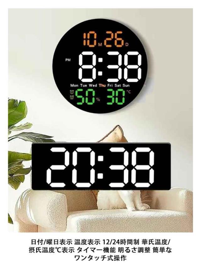 | 【壁掛け時計 リモコン付 】 【 多機能LED目覚まし時計 】 【 明るさ10段階 調節可能 】 超大型で遠くからでもはっきり見えます。家/オフィス/公共の場のための普遍的なデジタル時計。 日付/曜日表示 温度表示 12/24時間制 華氏温度/摂氏温度℃表示 タイマー機能 明るさ調整 簡単なワンタッチ式操作 用途に応じて明るさを調整でき、10段階調光機能付きです。壁掛け時計の背面下部には自動調光ボタンがあり、真ん中を押すと、環境に応じて明るさを自動調整します。 | |