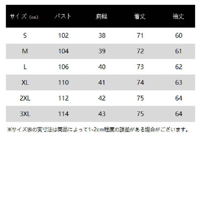 | サイズ | S M L XL 2XL 3XL |