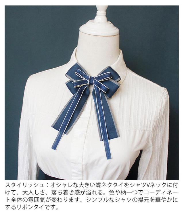 | ピンとゴム2つのタイプを選択可能のオシャレなロングリボンタイ! 学院風など人気なデザインで仕上げて、スクールリボンとして最適! スタイリッシュ:オシャレな大きい蝶ネクタイをシャツVネックに付けて、大人しさ、落ち着き感が溢れる。色や柄一つでコーディネート全体の雰囲気が変わります。シンプルなシャツの襟元を華やかにするリボンタイです。 コーデ:セーター、ニット、カットソー、ワンピースなどに簡単に合わせて、コート、バッグ、帽子などに飾っても上品でマフラーピン、スカーフピンとして使ってもすごく似合います。フォマールにも、カジュアルにも目立つ首元で目線を集めます。 適用場面:平日出勤・パーティー・結婚式・披露宴・面接・入学式・卒業式などほとんど全ての場合に適用する。バレタインデー・クリスマス・母の日・誕生日・記念日・お盆・ホワイトデー・恋人に友達に最高のプレゼントです。 | |