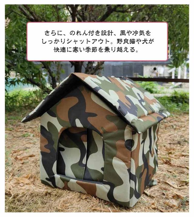 | 真冬も耐えられる暖かいペットハウス♪野良猫の避難所 雨や雪を防ぎ、丈夫で長持ちできる防水オックスフォード布を採用し、屋外に設置するのに最適。 さらに、のれん付き設計、風や冷気をしっかりシャットアウト。野良猫や犬が快適に寒い季節を乗り越える。 | |