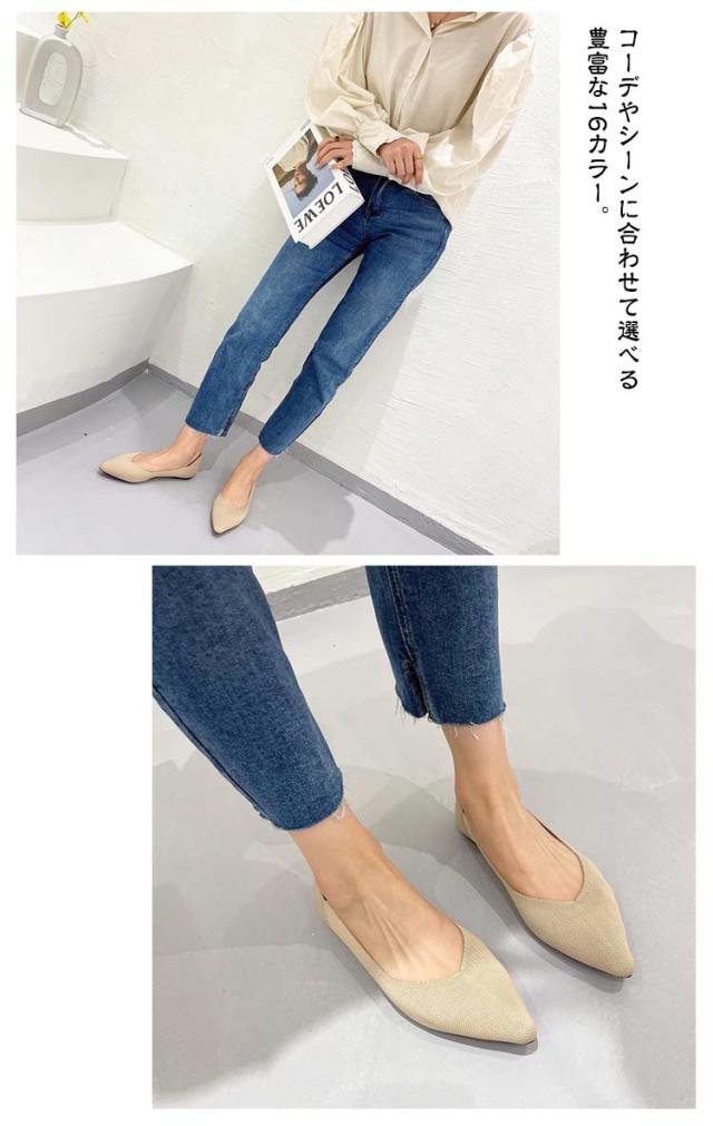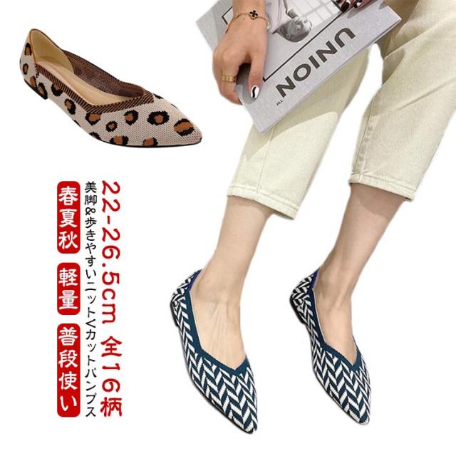 【全16柄】 パンプス 走れる 履きやすい 痛くない 柔らかい ローヒール 歩きやすい レディース 春 夏 秋 走れるパンプス 脱ぎやすい 軽量 ポインテッドトゥ ニットパンプス Vカット 無地 柄 シンプル お洒落 きれいめ 大きいサイズ