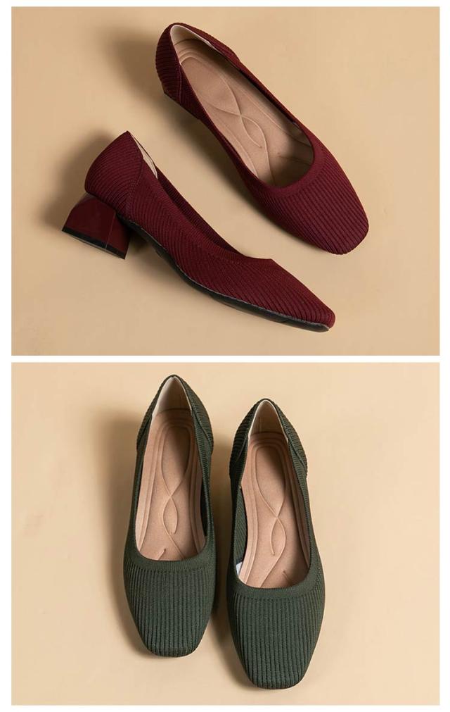 選べる9色 パンプス 走れる 履きやすい 痛くない 柔らかい ローヒール 太めヒール 歩きやすい レディース 靴 春 夏 秋 走れるパンプス シューズ 立ち仕事 軽量 スクエアトゥ ニットパンプス 無地 シンプル お洒落 きれいめ 高級感 入学式 卒業式 参観 普段使い ママ 母の日