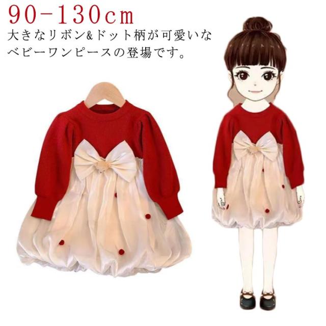 | 90-130cm 大きなリボン&ドット柄が可愛いなベビーワンピースの登場です。 ふわふわフリフリ&優しい色のドレス。 リボンやレースをあしらったステキ! 秋口から春先まで着られる素材感で、 入学式や卒業式、発表会や結婚式など冠婚葬祭、 様々なフォーマルシーンにレディーな印象で対応。 | |