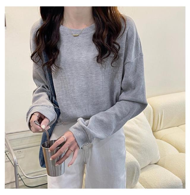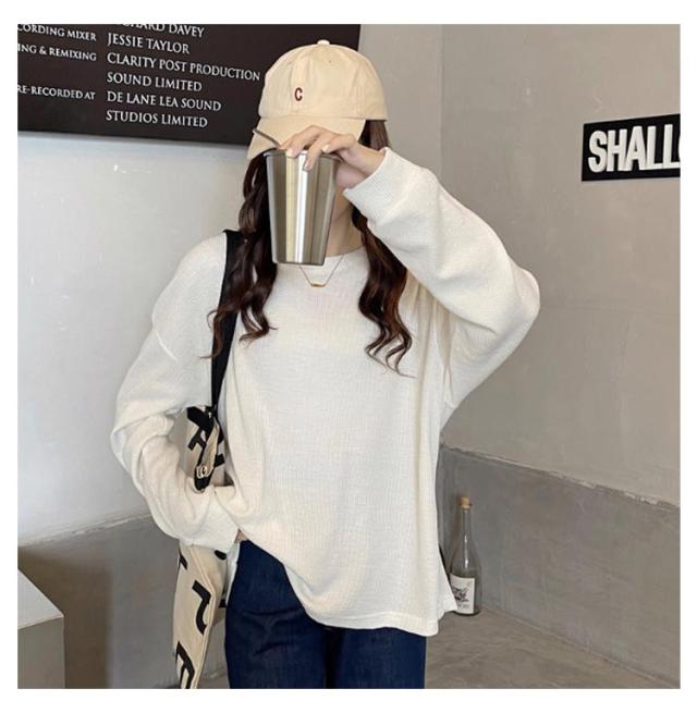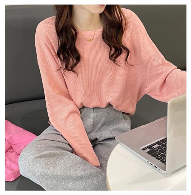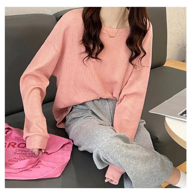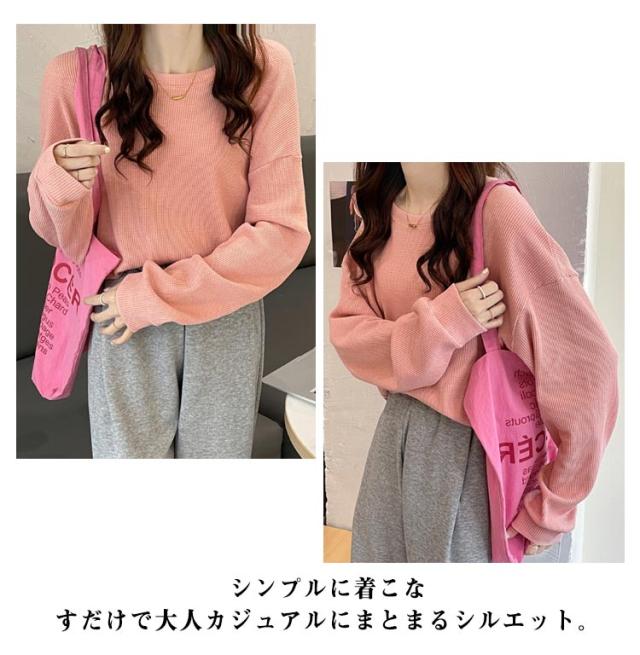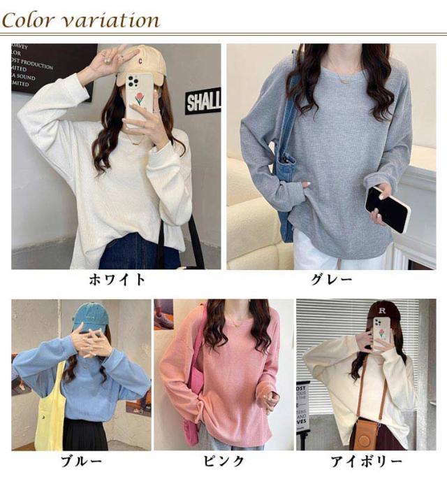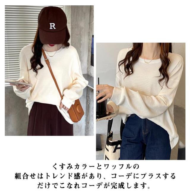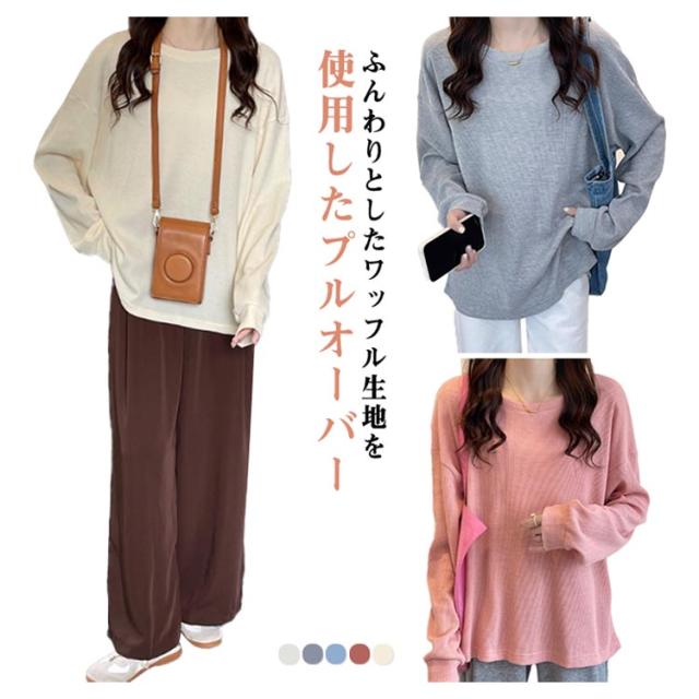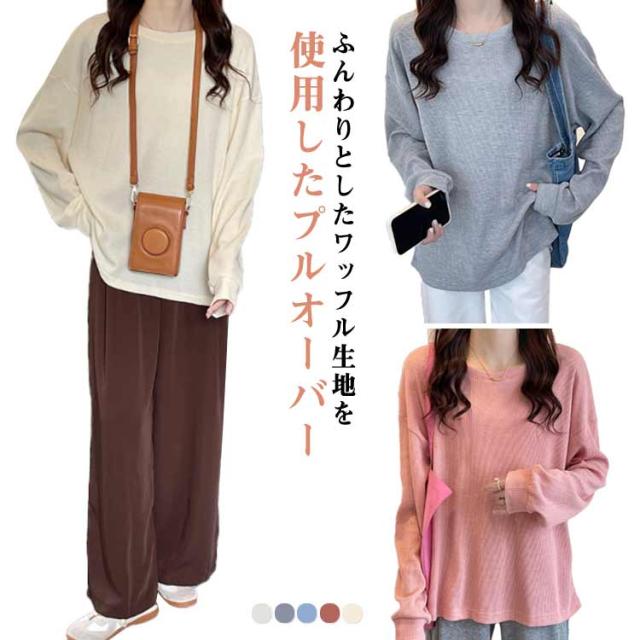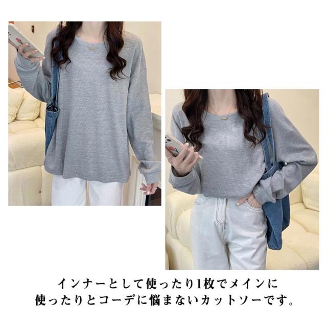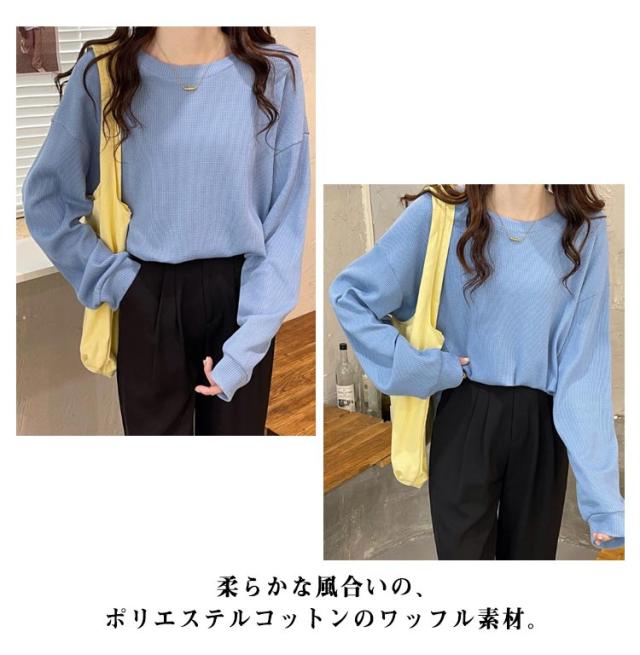 重ね着 長袖 カットソー ワッフル ワッフル ロンT 無地 ロングTシャツ ワッフルTシャツ ワッフル カットソー Tシャツ トップス 長袖 ドロップショルダー プルオーバー レイヤード ロンT 春 ワッフル ゆったり 大きいサイズ オーバーサイズ