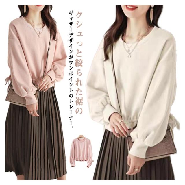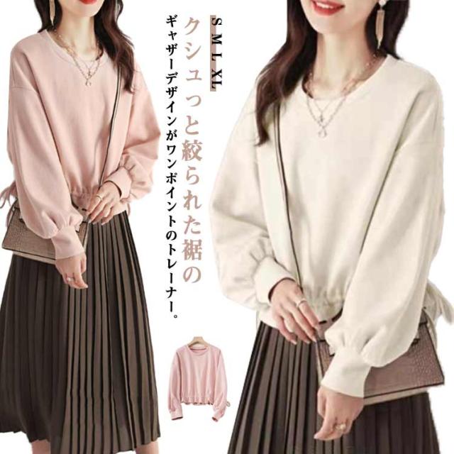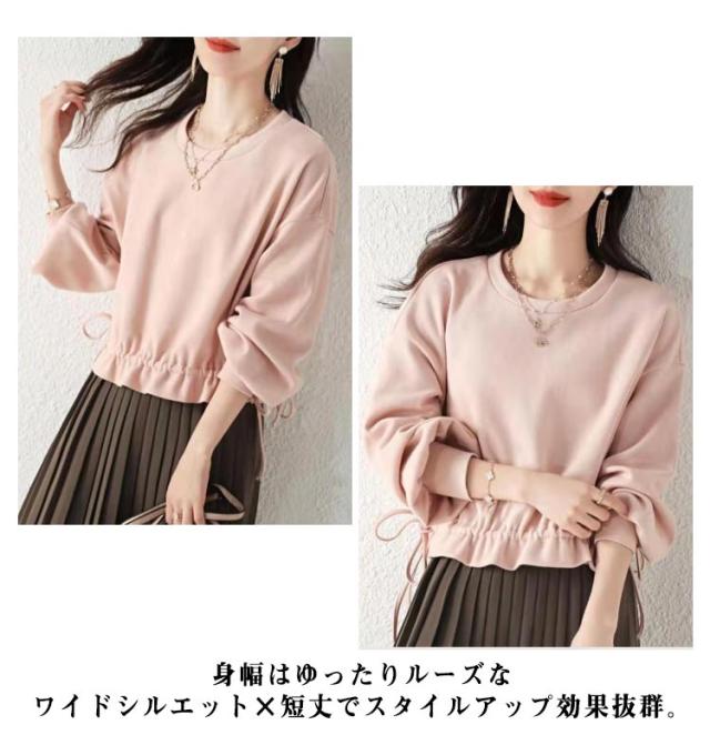 プルオーバー プルオーバー 20代 ブライトスウェット トップス ペプラム レイヤード 長袖 フリルショート丈トレーナー 無地 50代 フリルショート丈トレーナー 30代 40代 ぽわん袖 長袖 着回し スエット シンプル 薄手 大人 きれいめ