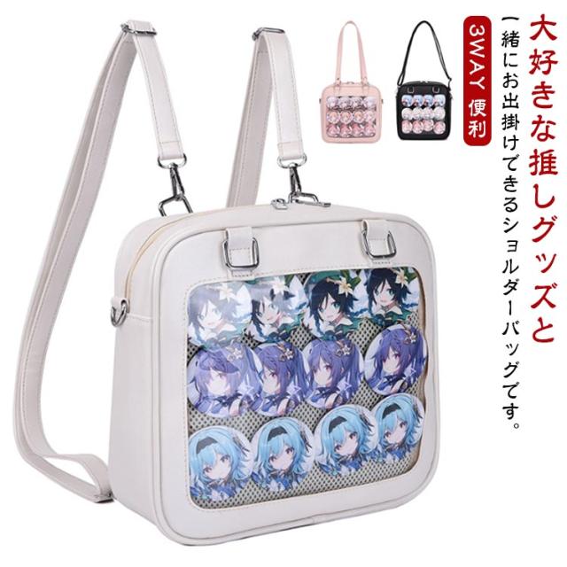 3WAY 痛バッグ レディース 痛バ ショルダーバッグ ハンドバッグ リュック ビニールバッグ ガールズ 鞄 カバン かばん ヲタバ トート トートバッグ 缶バッチ クリアバッグ 見せバッグ かわいい PU クリア バッグ 御宅 お宅 カジュアル ギフト 誕生日