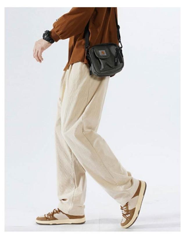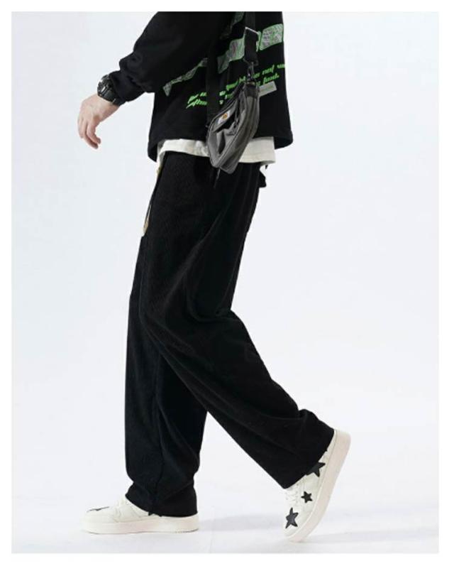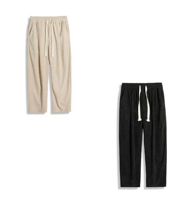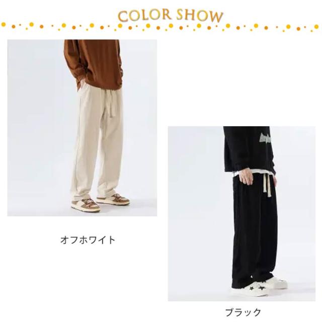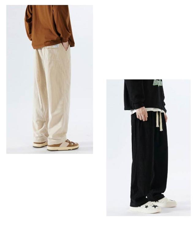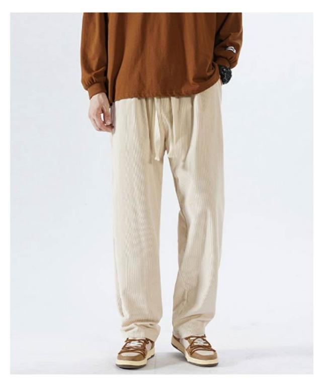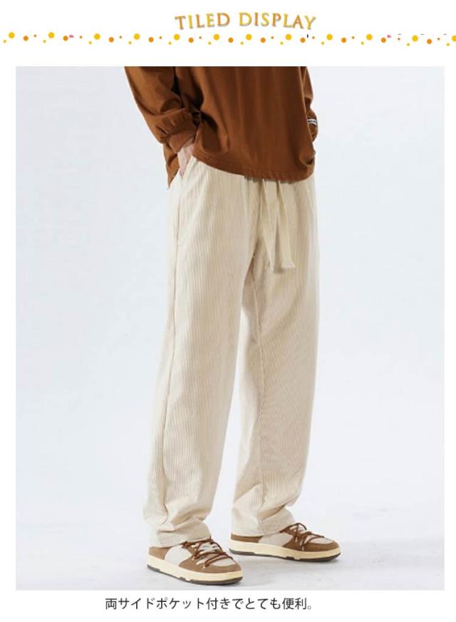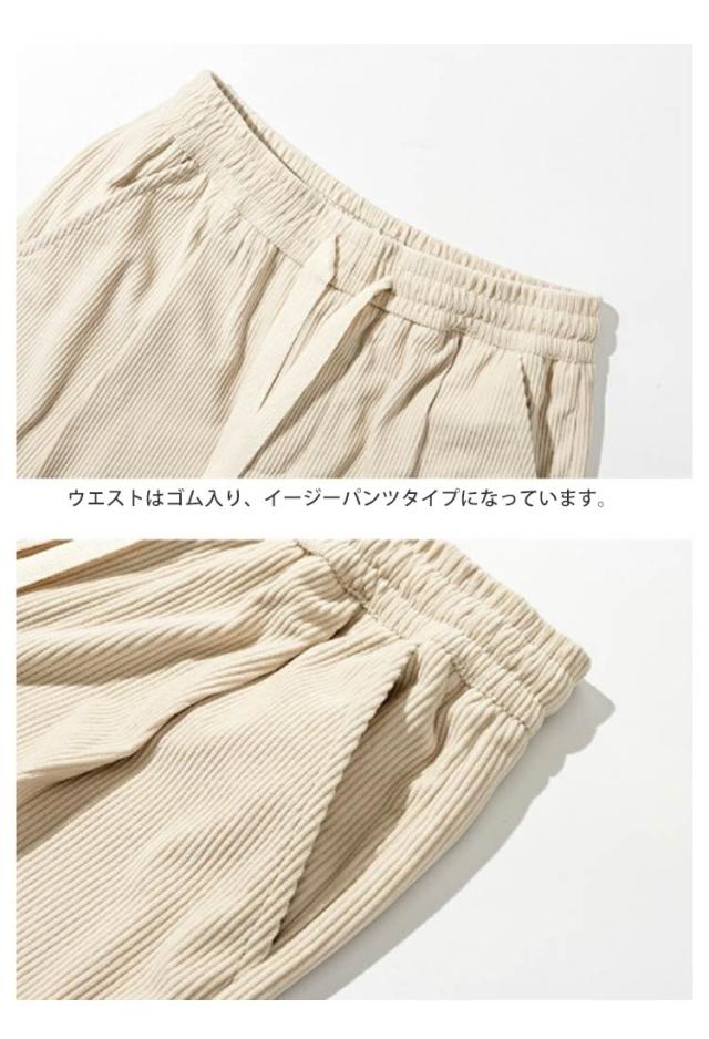 ウエストゴム カジュアル 無地 ロングパンツ パンツ コーデュロイ メンズ ワイドパンツ ワイドパンツ ポケット付き ボトムス シンプル ストレートパンツ 紐付き バギーパンツ イージーパンツ 春服 秋服 大きいサイズ オフホワイト ブラック