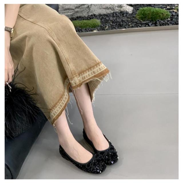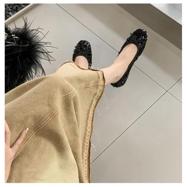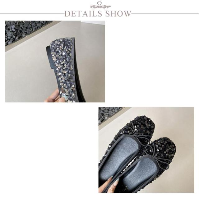 パンプス ローヒール レディース バレエシューズ リボン キラキラ グリッター スパンコール 歩きやすい ぺたんこ スクエアトゥ 春夏新作 かわいい 痛くない 春夏新作 疲れにくい カジュアル