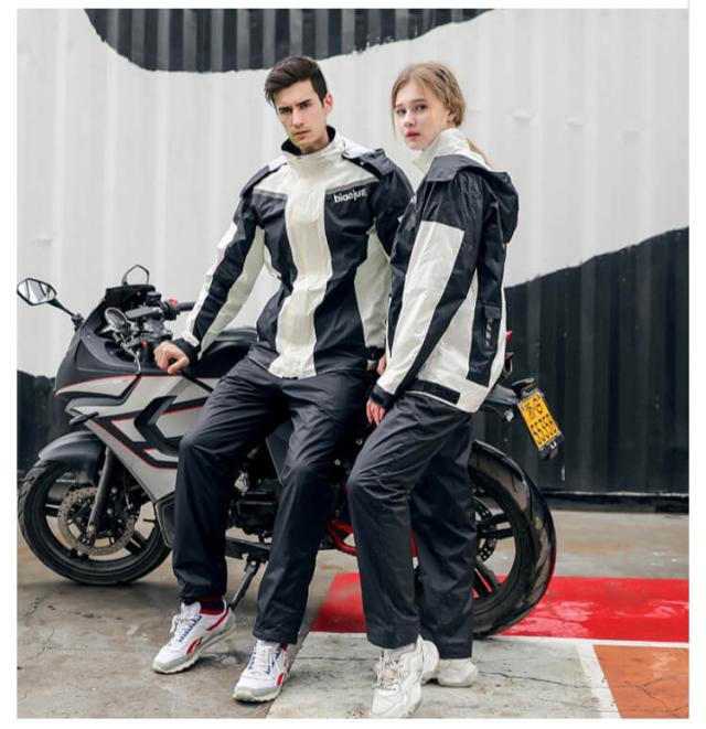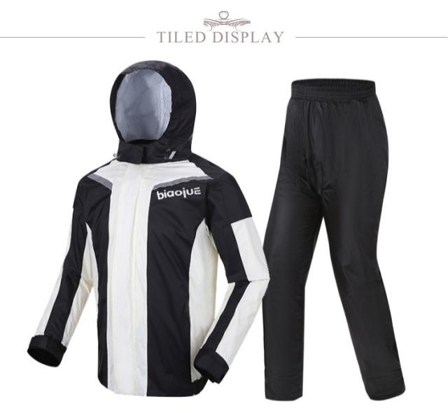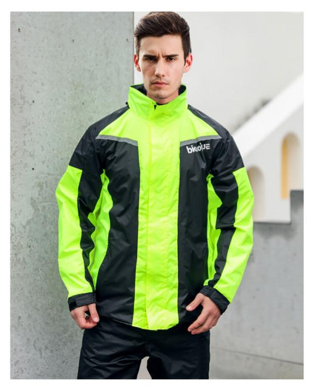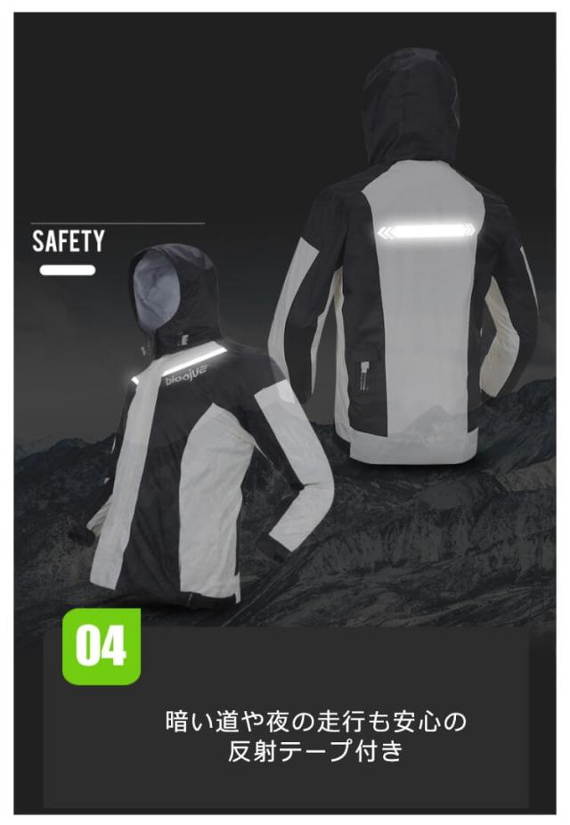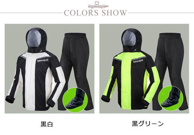 | ・バイクにも対応する上下組のレインスーツ! ・機能性と安全性を両立 ・表面は超はっ水加工で水はじき抜群 ・暗い道や夜の走行も安心の反射テープ付き | |