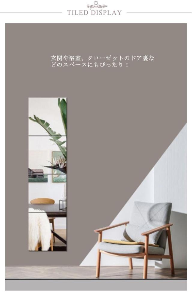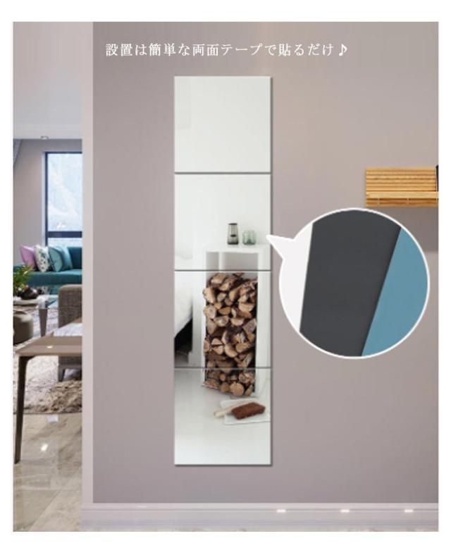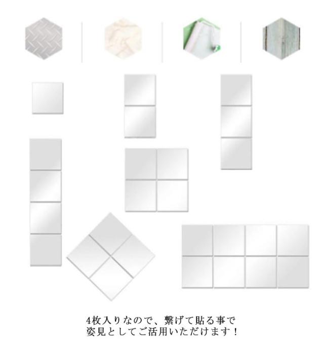 | ・好きな場所に貼れて割れにくいウォールミラー ・設置は簡単な両面テープで貼るだけ♪ ・4枚入りなので、繋げて貼る事で姿見としてご活用いただけます! ・玄関や浴室、クローゼットのドア裏などのスペースにもぴったり! | |