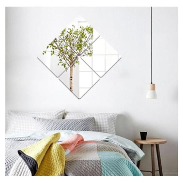 スクエアカット ミラー 鏡 どこでも貼れる 割れない 全身鏡 4枚セット ケガ防止 姿見鏡 二次災害防止 穴あけ不要 飛散防止 30×30cm ケガ防止 貼付け 軽量 省スペース 直角 鏡 丸角 ラウンドカット 歪み軽減