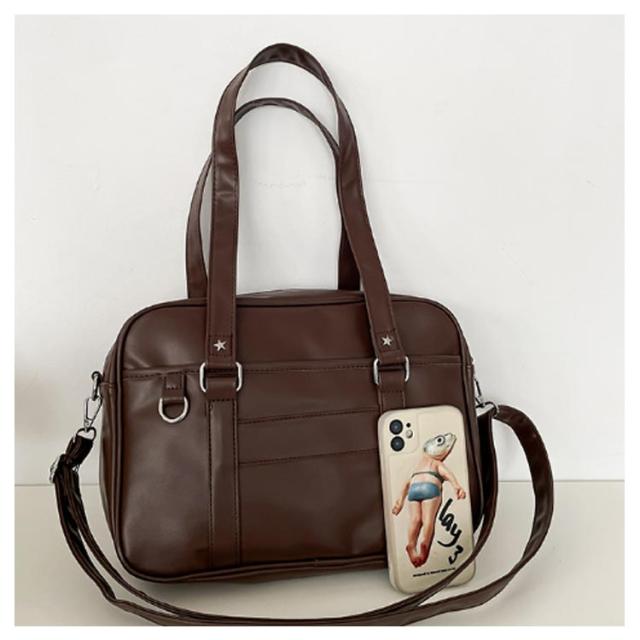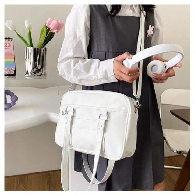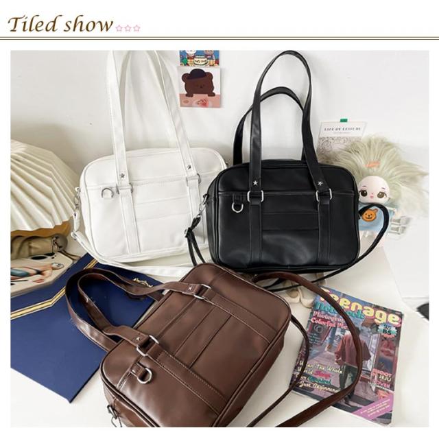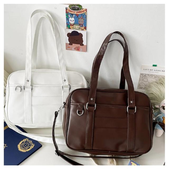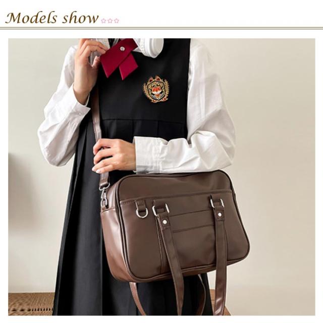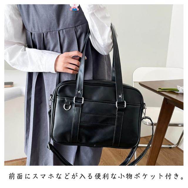 | レザー調の大人可愛いスクールバッグが登場! シンプルなのに、A4サイズが入る使いやすいサイズ感です。 前面にスマホなどが入る便利な小物ポケット付き。 底部には4つのマットが9取り付けられており底部の摩耗や汚れを防ぐことができます。 Dカンが付いているので、お気に入りのオタグッズや推し活グッズも付けやすいです。 アイドルのチェキホルダーを付けたり、アニメのグッズのキーホルダーを付けたりもできます。 きれいめで制服に似合いやすい、王道のカラーリングです。 お洒落さと使いやすさを兼ね備えた、機能的なバッグです。 | |