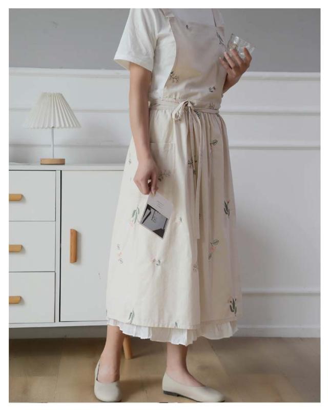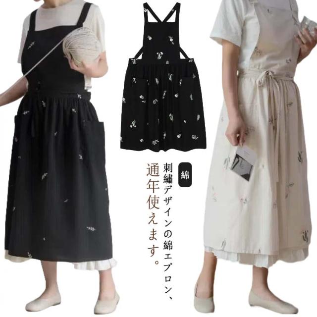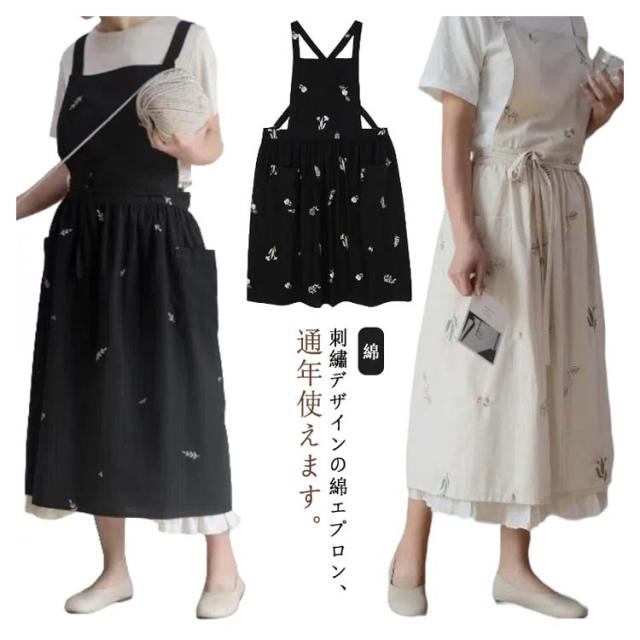 送料無料 エプロン おしゃれ エプロン ワンピース 大人 レディース 綿 ロング 刺? プレゼント シンプル カフェ 北欧風 保育士 花屋 敬老の日 母の日 ギフト かわいい